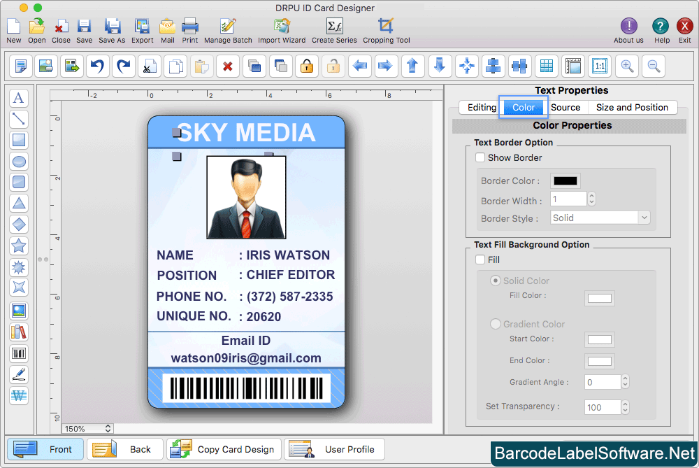 If you want to do further modification in your id card, then you can use Card Properties.To print designed ID Card, set all print settings and click on Print button. You can see the print preview of your designed ID Card.